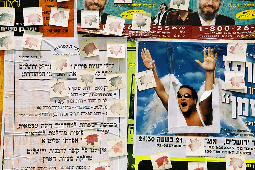 אני מדביקה את הפתקים הצהובים עם עלי השכת על לוח שניצב תחת עץ דולב ברחוב הפלמ״ח. תוך כדי ההדבקה כבר נושרים כמה עלים על המדרכה. הם נושרים יפה, מסתובבים באויר, כאילו היו עלים של ממש. על פני חולפים השבים מבית הכנסת, ספורטאים של שבת בבוקר וכמה נהגי מוניות. אחד מהם עוצר את מכוניתו לחצי דקה לפני הלוח, מסתכל וממשיך לנסוע.