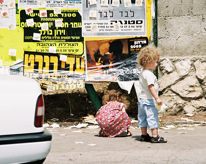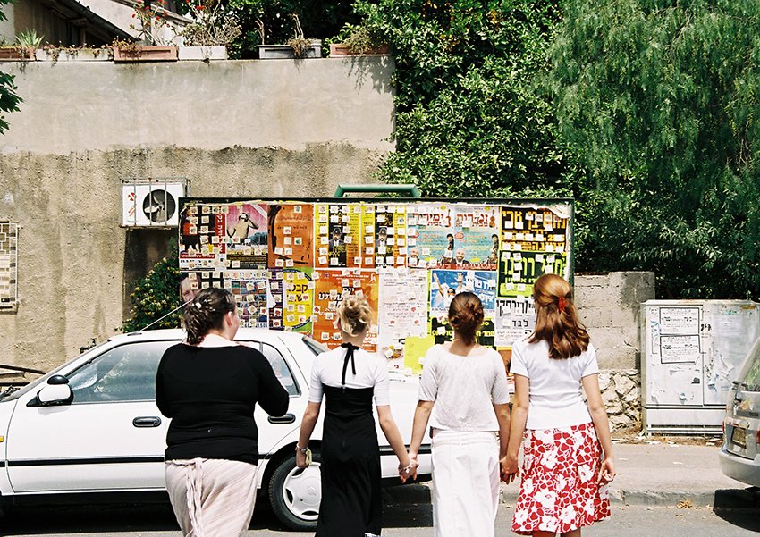 בעקבותיהם אישה אחת מביטה בריכוז. ״אבל את יודעת, ככה אי אפשר לקרוא מה שכתוב פה, יש פה מודעה שאני ממש מתעניינת בה״, היא מצביעה על הזמנה להילולת ל״ג בעומר בצבעי מדורה.