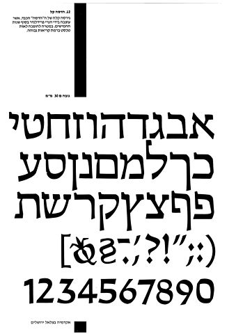 ההשפעה הלטינית הברורה והכפירה במסורת הצורנית של האות העברית לא מנעו מיוסף בודקו, מנהל ״בצלאל החדש״, להצהיר ב-1935 שעיצובה הוא ״הקניין העתיק ביותר שנשתמר מן היצירות האמנותיות של ארצנו״. באמירה זו הוא הפקיע את מלאכת העיצוב מהדיון המקצועי והפונקציונלי, העניק לה צידוק אידאולוגי כחלק מהמסורת היהודית (״קניין עתיק״), ורתם אותה לתועלת המפעל הציוני (״של ארצנו״).