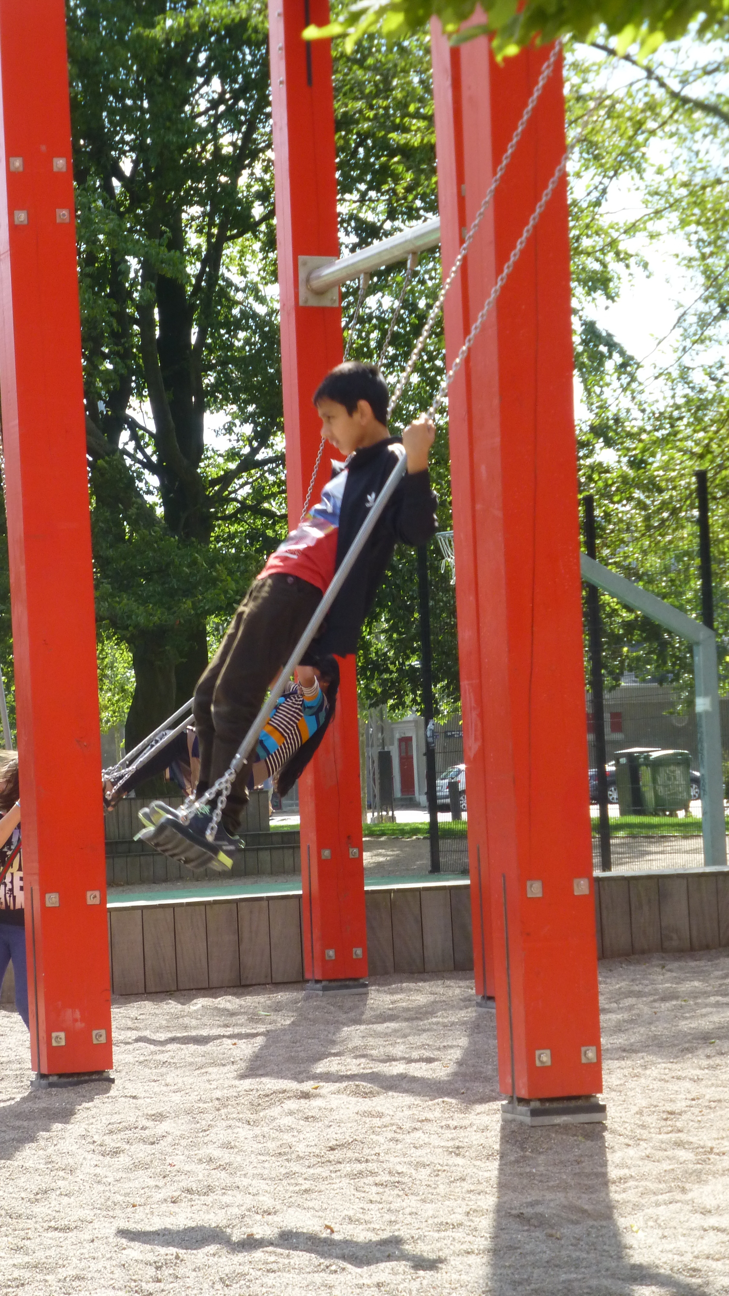 הנדנדות בפארק שמעיפות גבוה ולמעלה, מעניקות למתנדנד תחושת ריחוף טרפזית. השרשראות שלהן ארוכות במיוחד, הצירים משומנים היטב, ובמסגרות הגותיות האדומות יש הזמנה למשחק והבטחה למפגש עם צמרת העץ. אף הורה, גבוה ווקינגי ככל שיהיה, לא יוכל למתוח את הזרועות גבוה מספיק, כדי לתת דחיפה הגונה בשיא הגובה. המעבר בתנועה מעמידה לשכיבה הוא חוויה קרקסית זעירה לילדים, למבוגרים ולכל מי שמעז בעצם. למרות סמיכותן של הנדנדות זו לזו הן מייצרות חוויה פרטית. השילוב בין תנוחתו המקובעת של הגוף לנקודת המבט שמשתנה עם התנועה, מפנה את המתנדנדים הרחק אל האופק; קצה הפארק, צמרת העץ, השמים, ונדמה שהם נעים בכיוון משותף כמו להקת ציפורים נודדות.